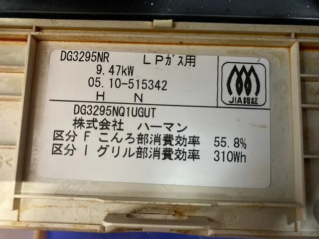 既存のビルトインコンロは、DG3295NR、ハーマン、メタルトップ、幅60cmタイプ、ビルトインコンロです。