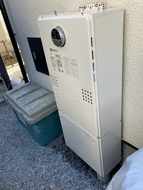 ノーリツ、GTH-C2448AWD→GTH-C2461AWD-1 BL、ノーリツ、エコジョーズ、24号、フルオート、屋外壁掛型、配管カバー付き、ガス温水暖房付ふろ給湯器交換工事ー埼玉県桶川市朝日