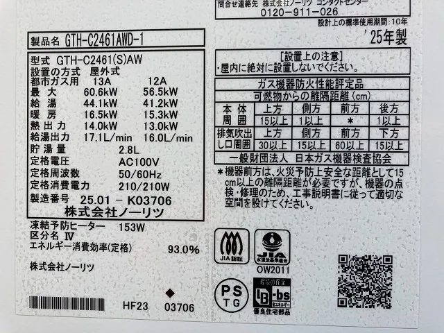 本日は、埼玉県桶川市朝日で(1戸建て)、GTH-C2461AWD-1 BL、ノーリツ、エコジョーズ、24号、フルオート、屋外壁掛型、配管カバー付き、ガス温水暖房付ふろ給湯器交換工事をしました。