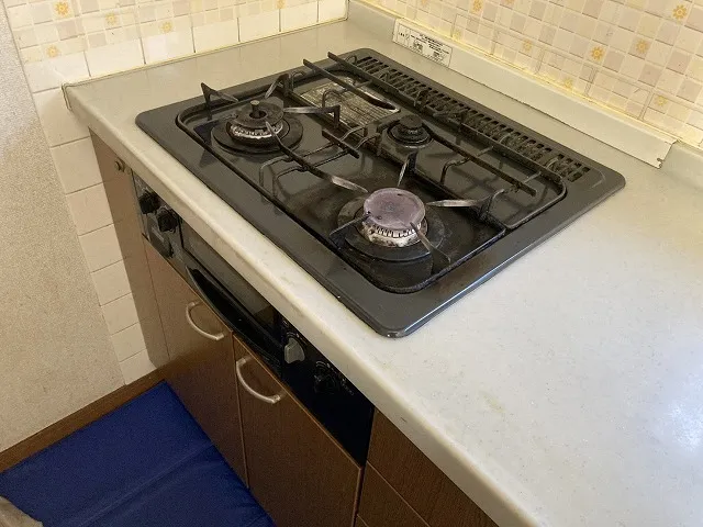 施工前→DG3067NR、ハーマン、ホーロートップ、3口、天板幅60㎝タイプ、ビルトインコンロ