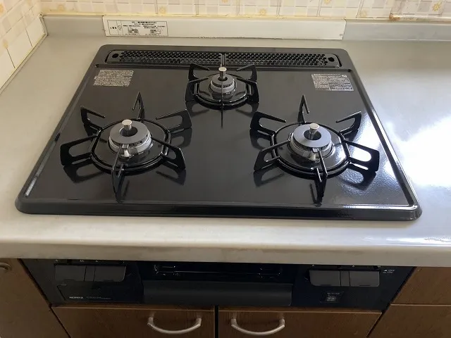 本日は、埼玉県さいたま市西区宮前町で(1戸建て)、N3GT2RVQ1、ノーリツ、メタルトップ、3口、ダブル高火力、無水片面焼グリル、天板幅60cmタイプ、ビルトインコンロ交換工事をしました。