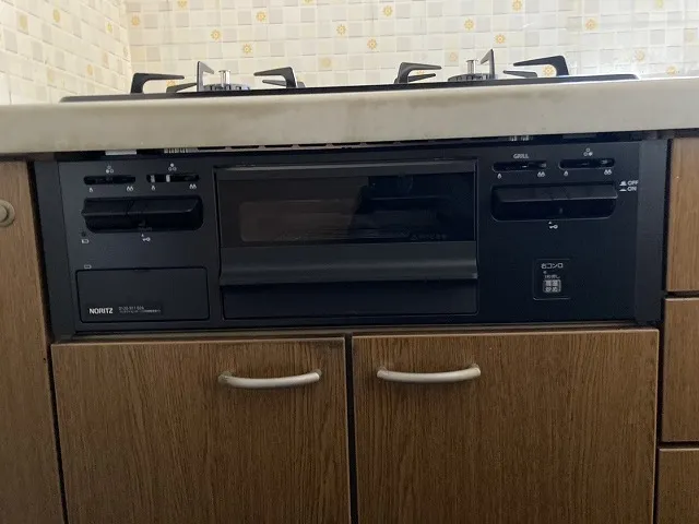 施工後→N3GT2RVQ1、ノーリツ、メタルトップ、3口、ダブル高火力、無水片面焼グリル、天板幅60cmタイプ、ビルトインコンロ