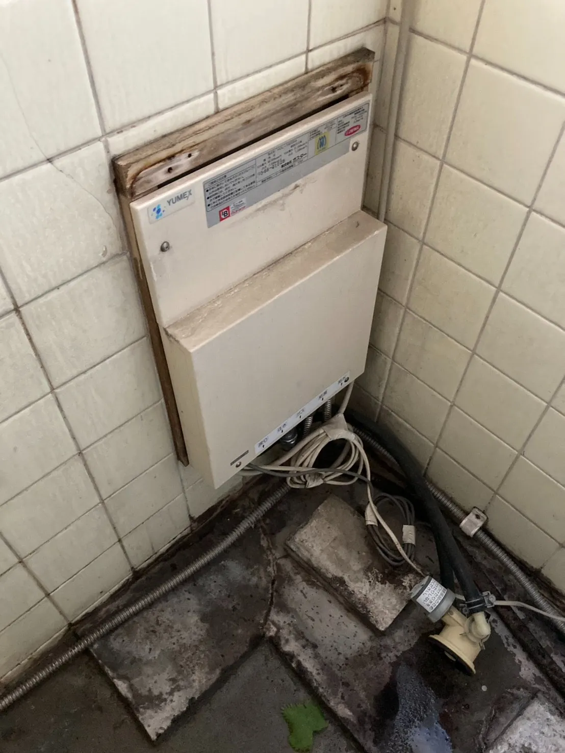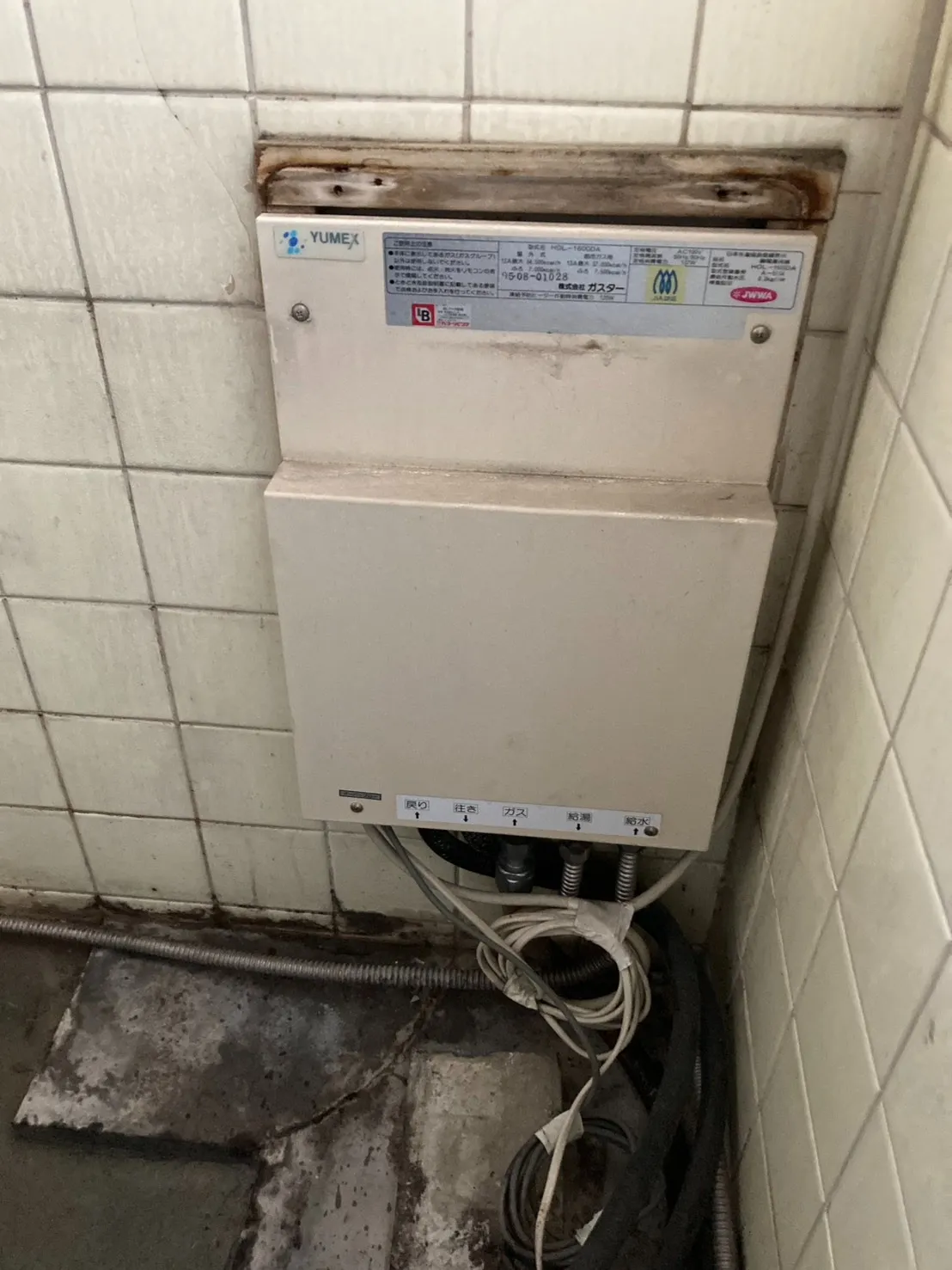 施工前→ガスター、HOL-1660DA、ユメックス、16号、フルオート、壁貫通型、給湯器