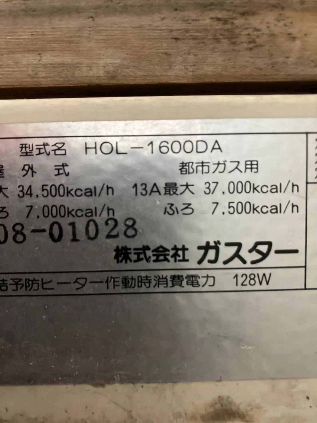 既存の給湯器は、ガスター、HOL-1660DA、ユメックス、16号、フルオート、壁貫通型、給湯器です。