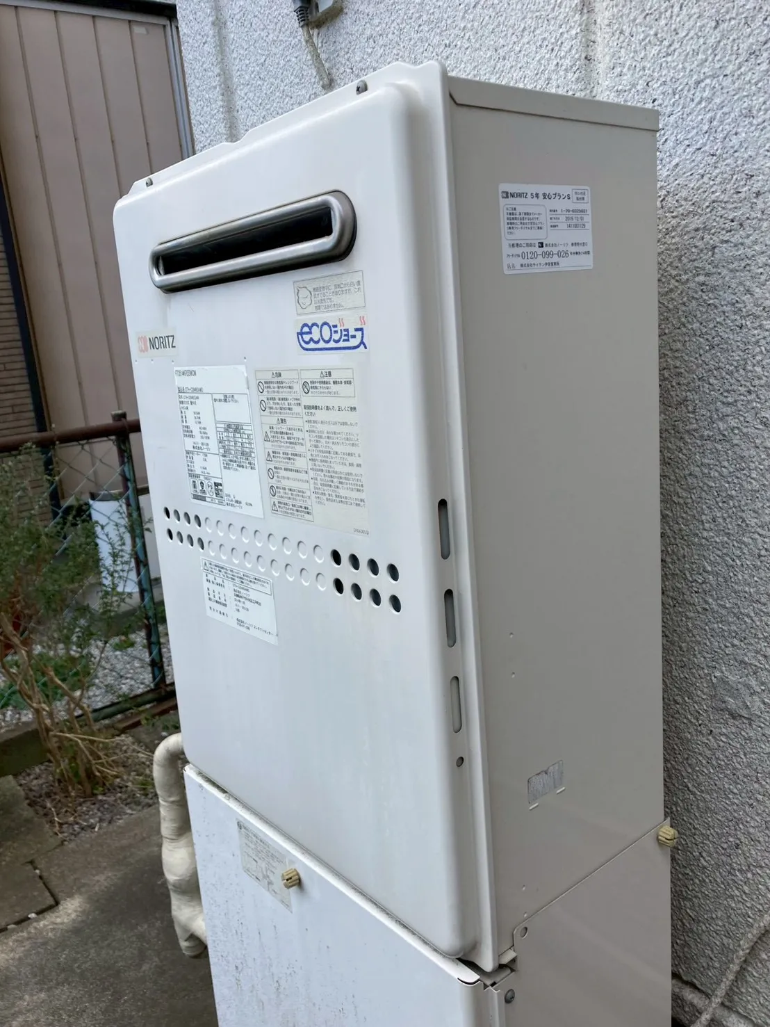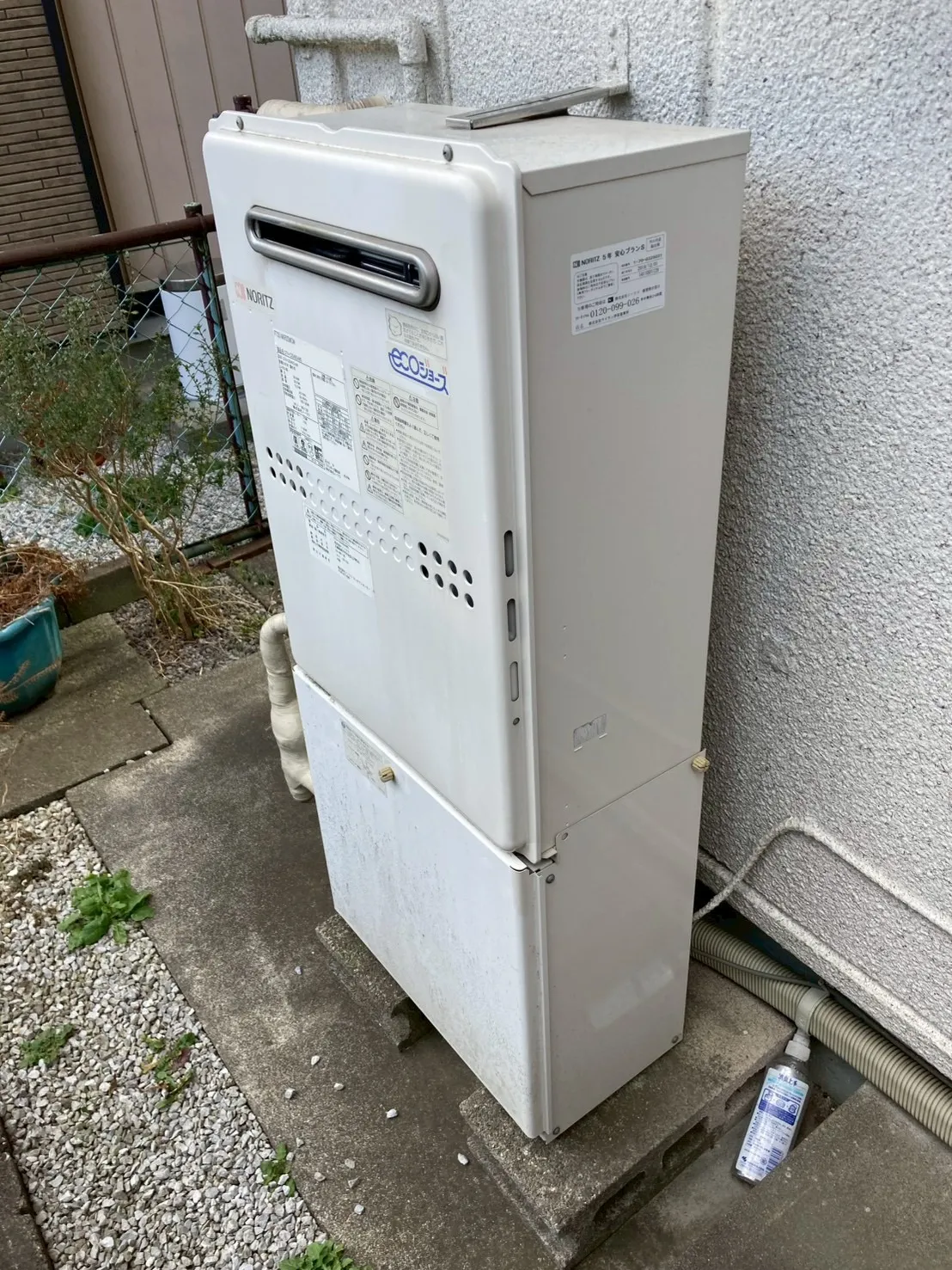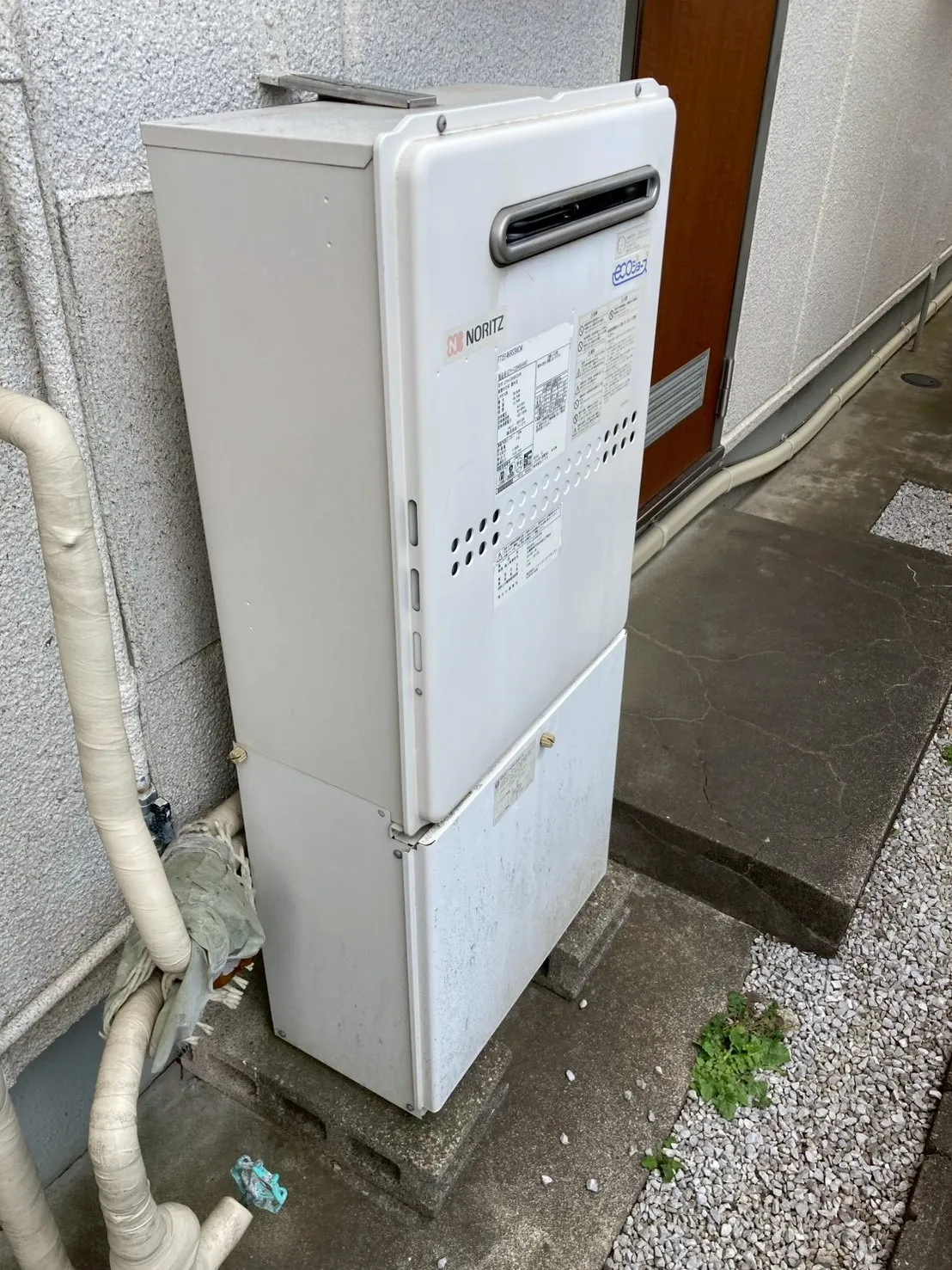 施工前→ノーリツ、GTH-C2049SAWD BL、20号、エコジョーズ、オート、据置台付き、ガス温水暖房付ふろ給湯器
