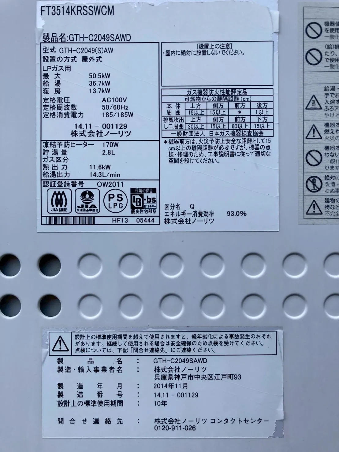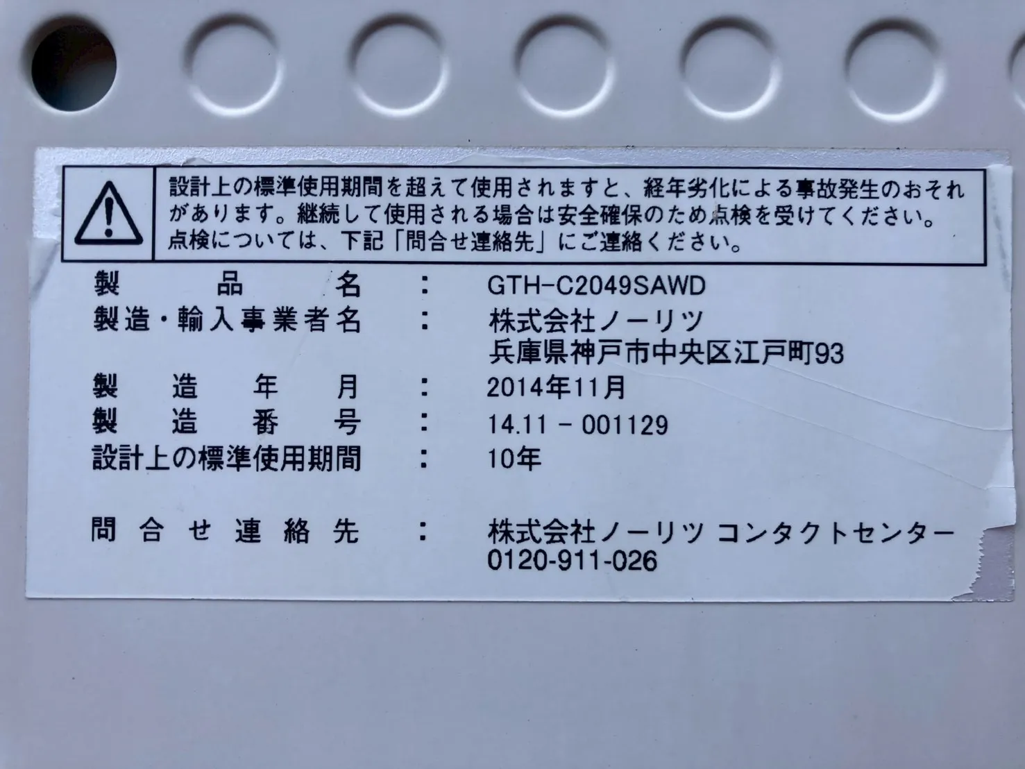11年間使用。888の設計標準使用期間(約10年)が経過したことを示すサインが出て、この機会に交換しようとお問い合わせを頂きました。ありがとうございます。