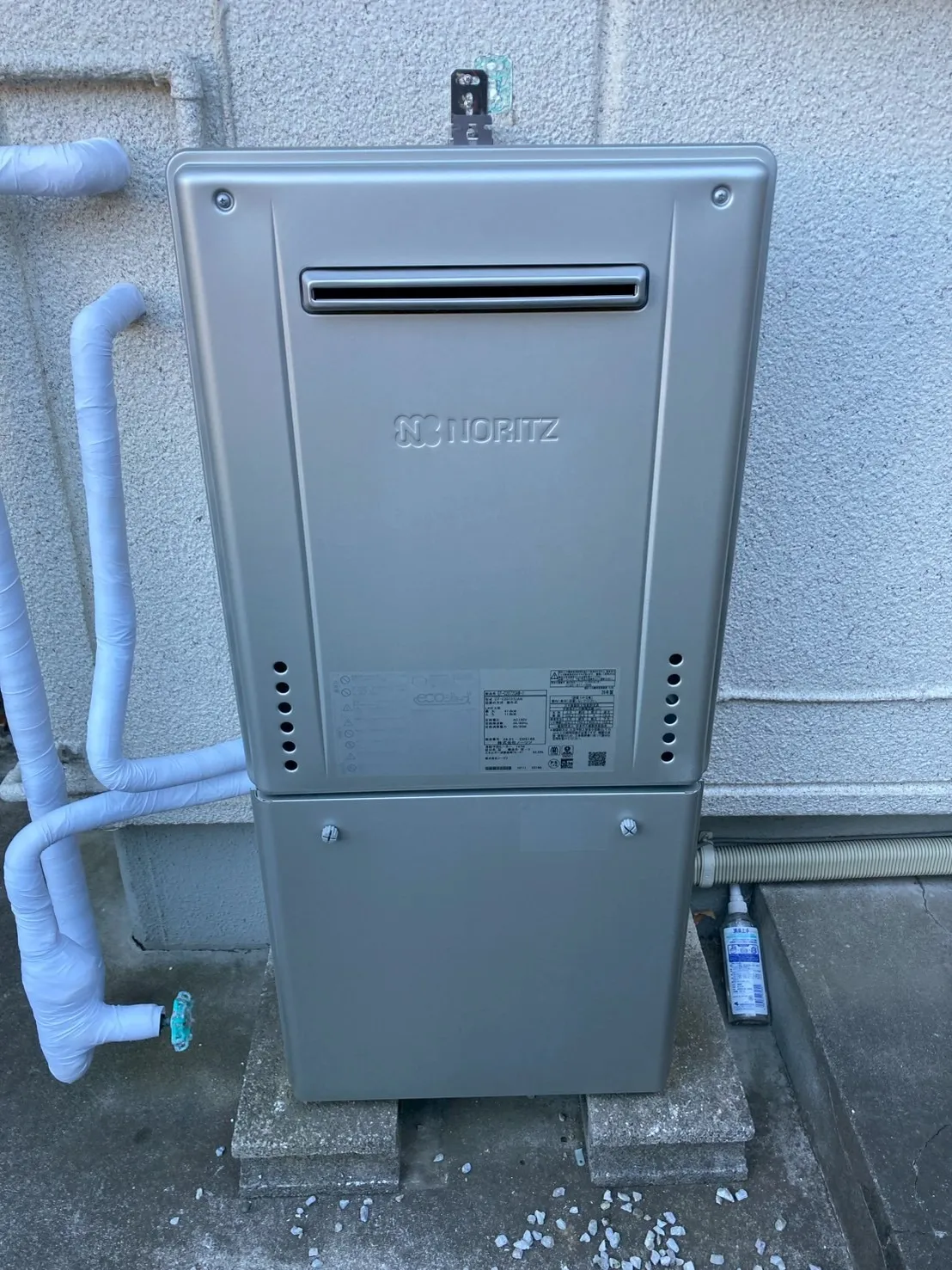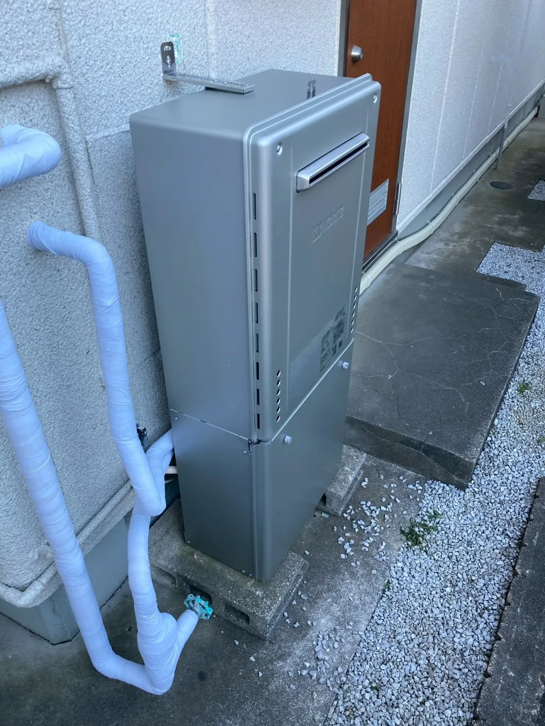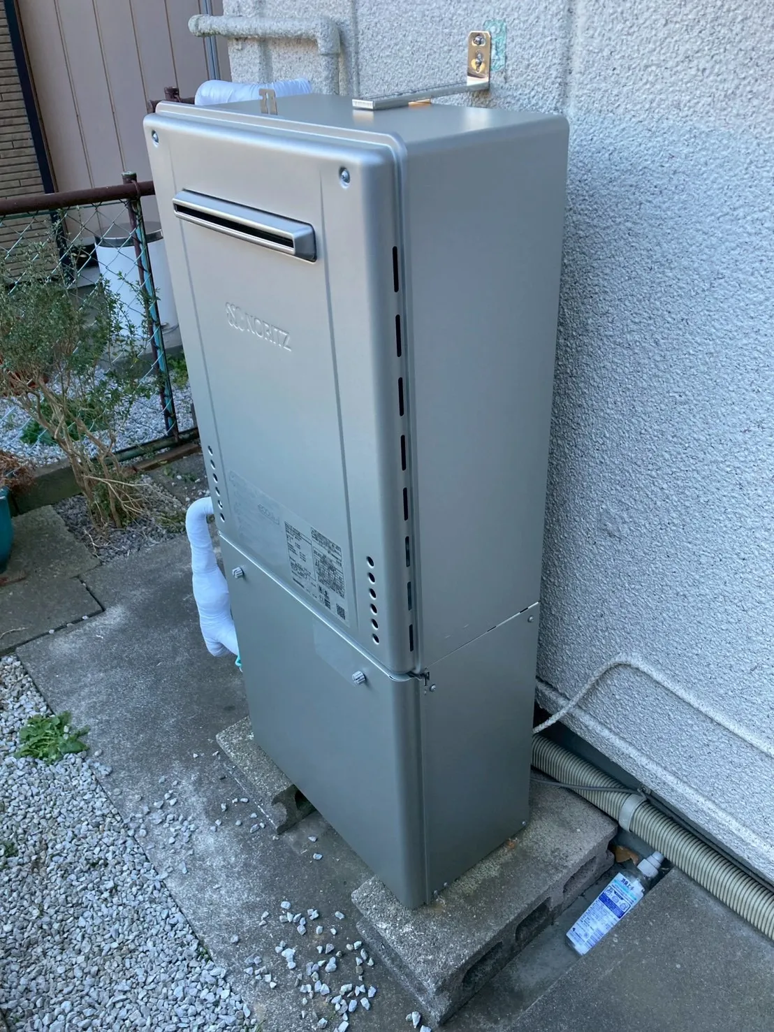 施工後→ノーリツ、GT-C2072SAW-1 BL、20号、エコジョーズ、オート、据置台付き、給湯器