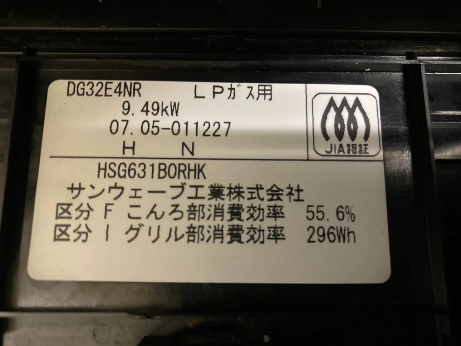 既存のビルトインコンロは、サンウェーブ、DG32E4NR(HSG631BORHK)、メタルトップ、天板幅60cmタイプ、3口です。