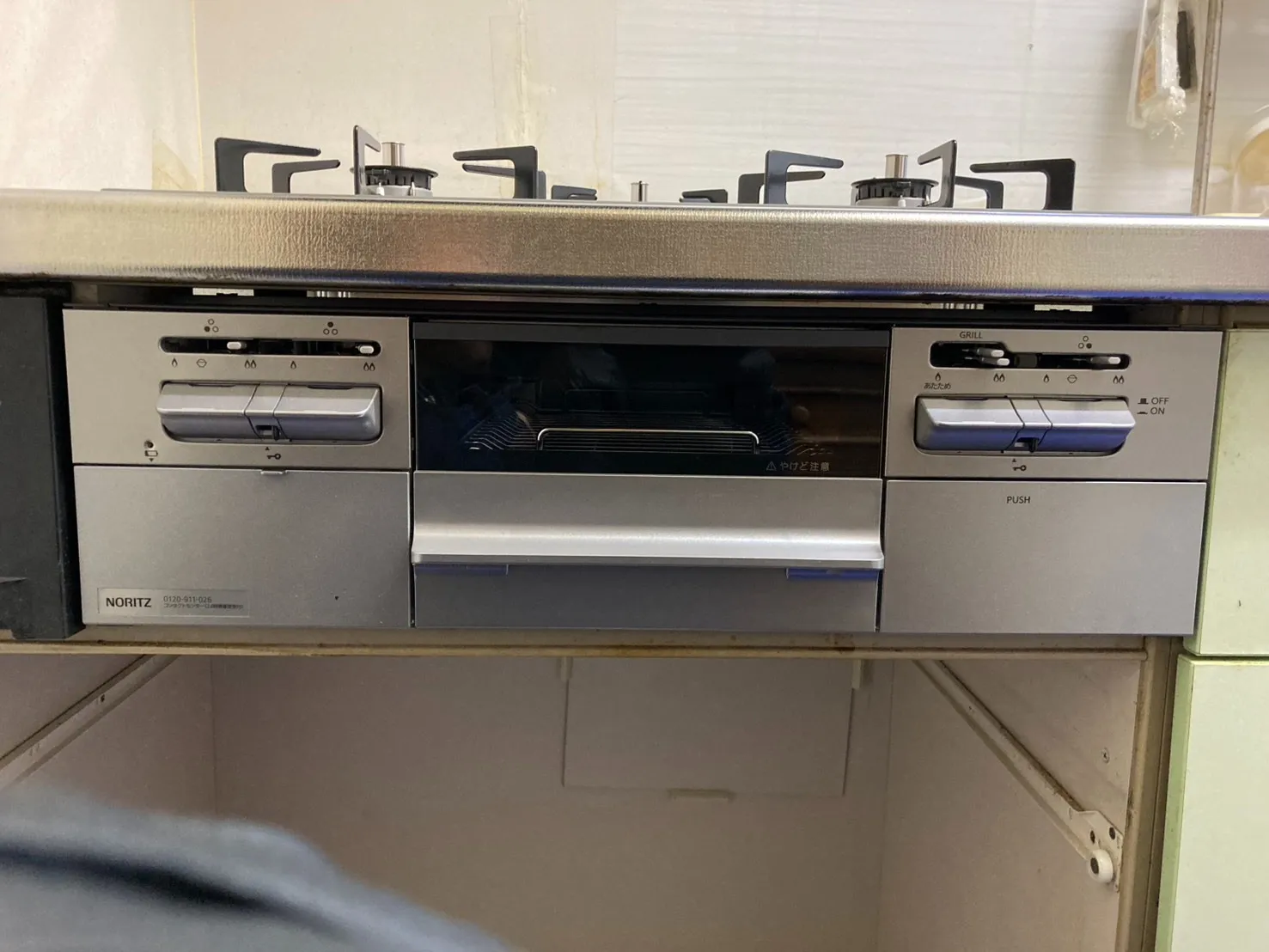 施工後→ノーリツ、N3WV6RWTP2SI、ファミ、つやめきガラストップ、天板色ムーンシルバー、フラットエッジ、無水両面焼きグリル、天板幅60mタイプ、3口、ビルトインコンロ