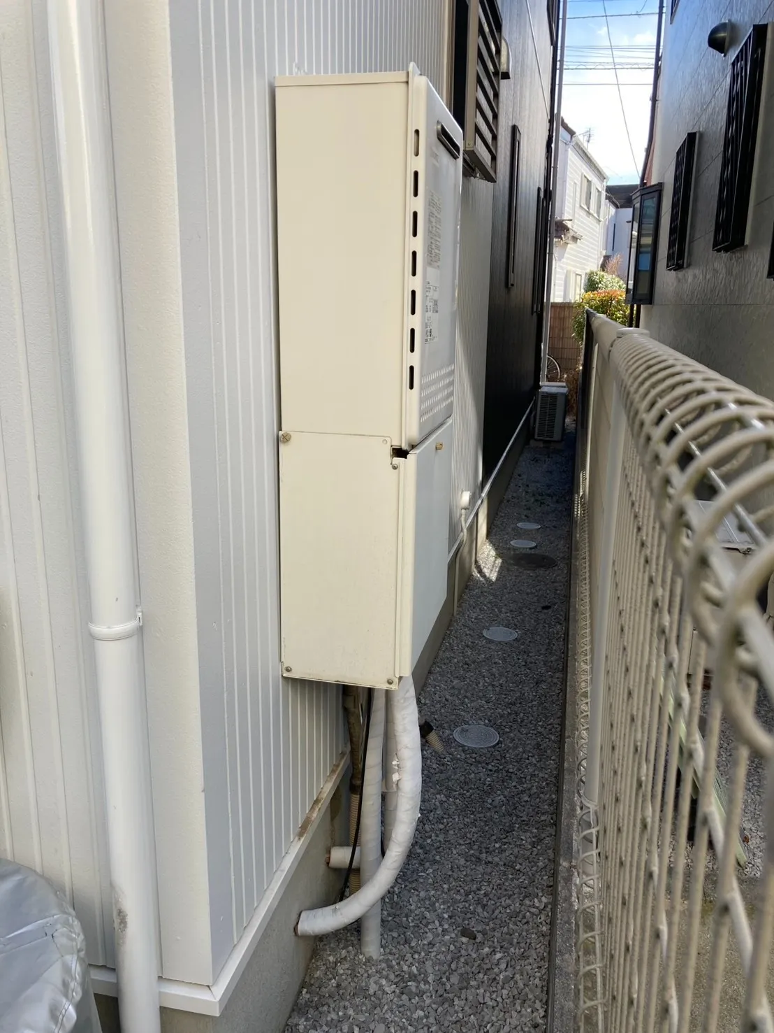 施工前→ノーリツ、GT-2450SAWX、24号、オート、屋外壁掛型、配管カバー付き、給湯器