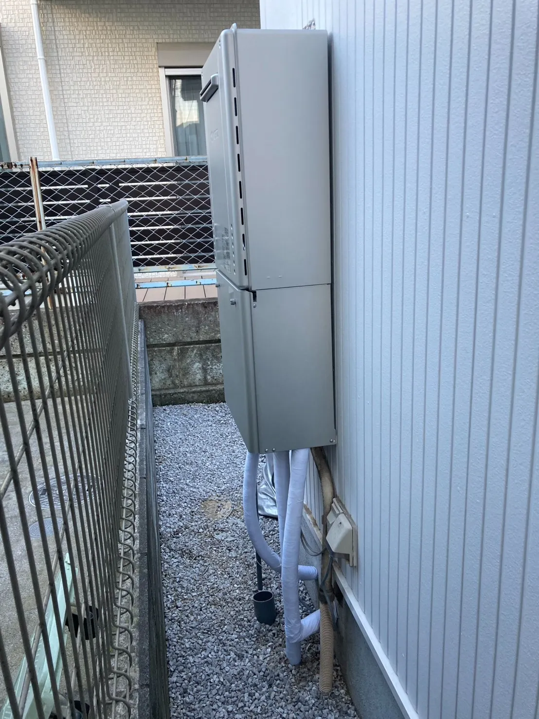 施工後→ノーリツ、GT-C2472SAW-1 BL、24号、エコジョーズ、オート、屋外壁掛型、配管カバー付き、給湯器