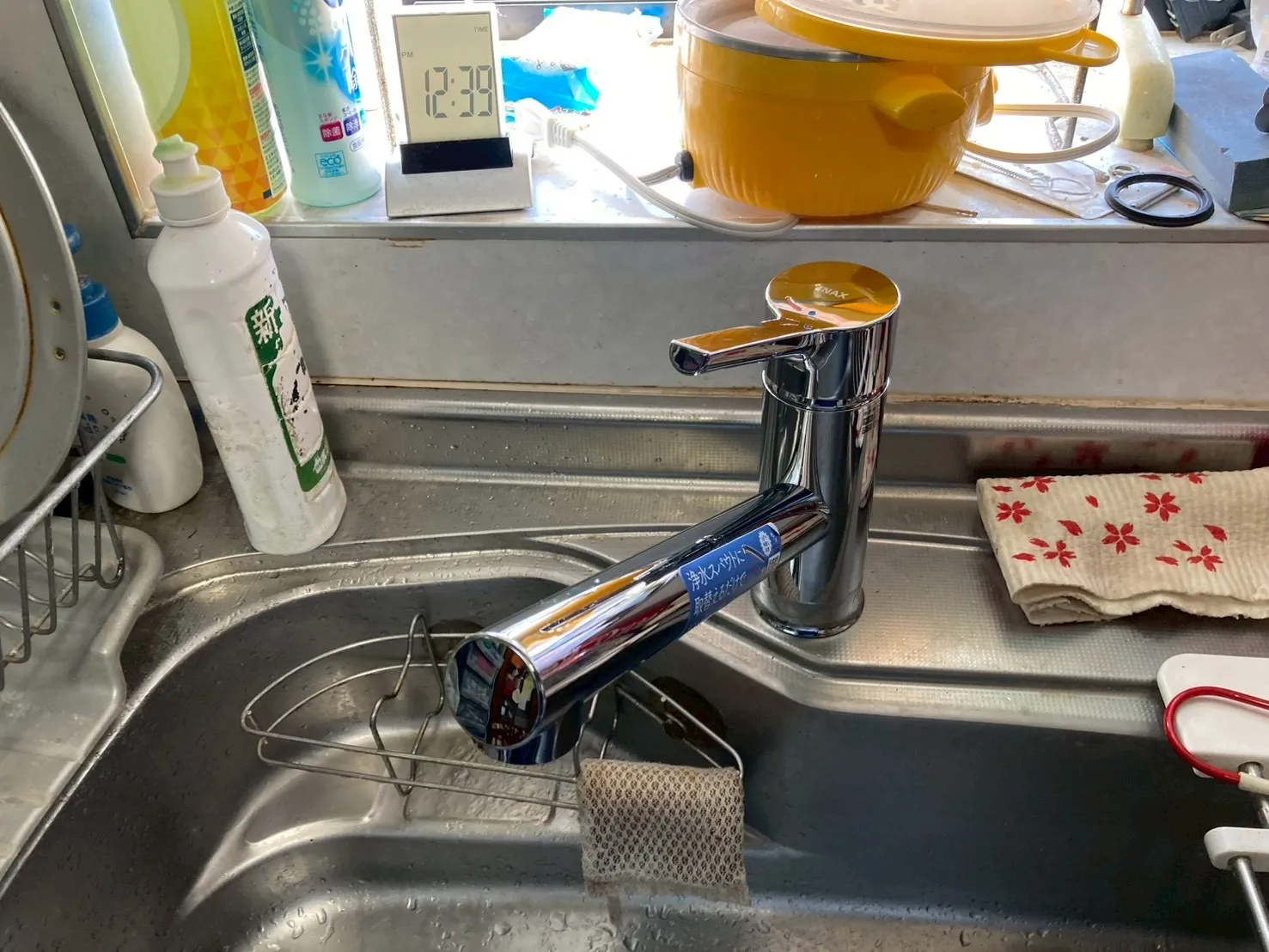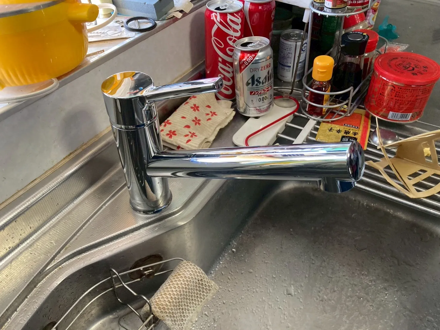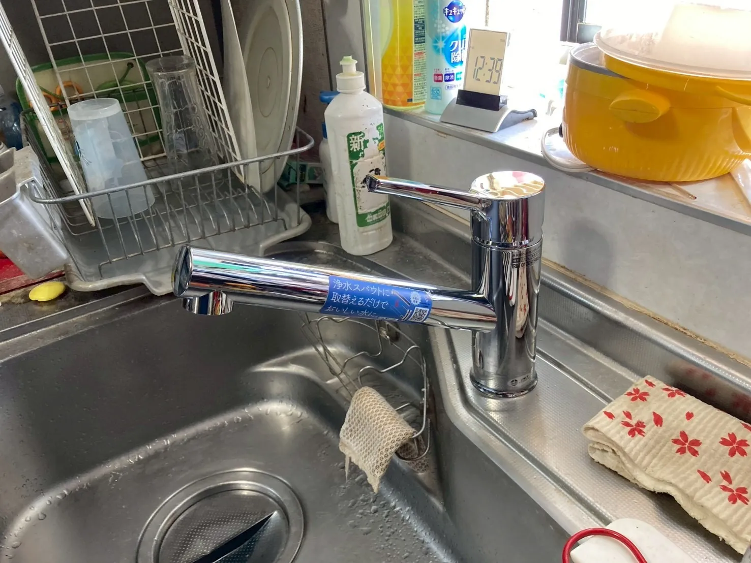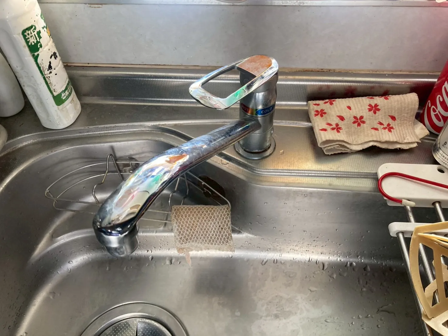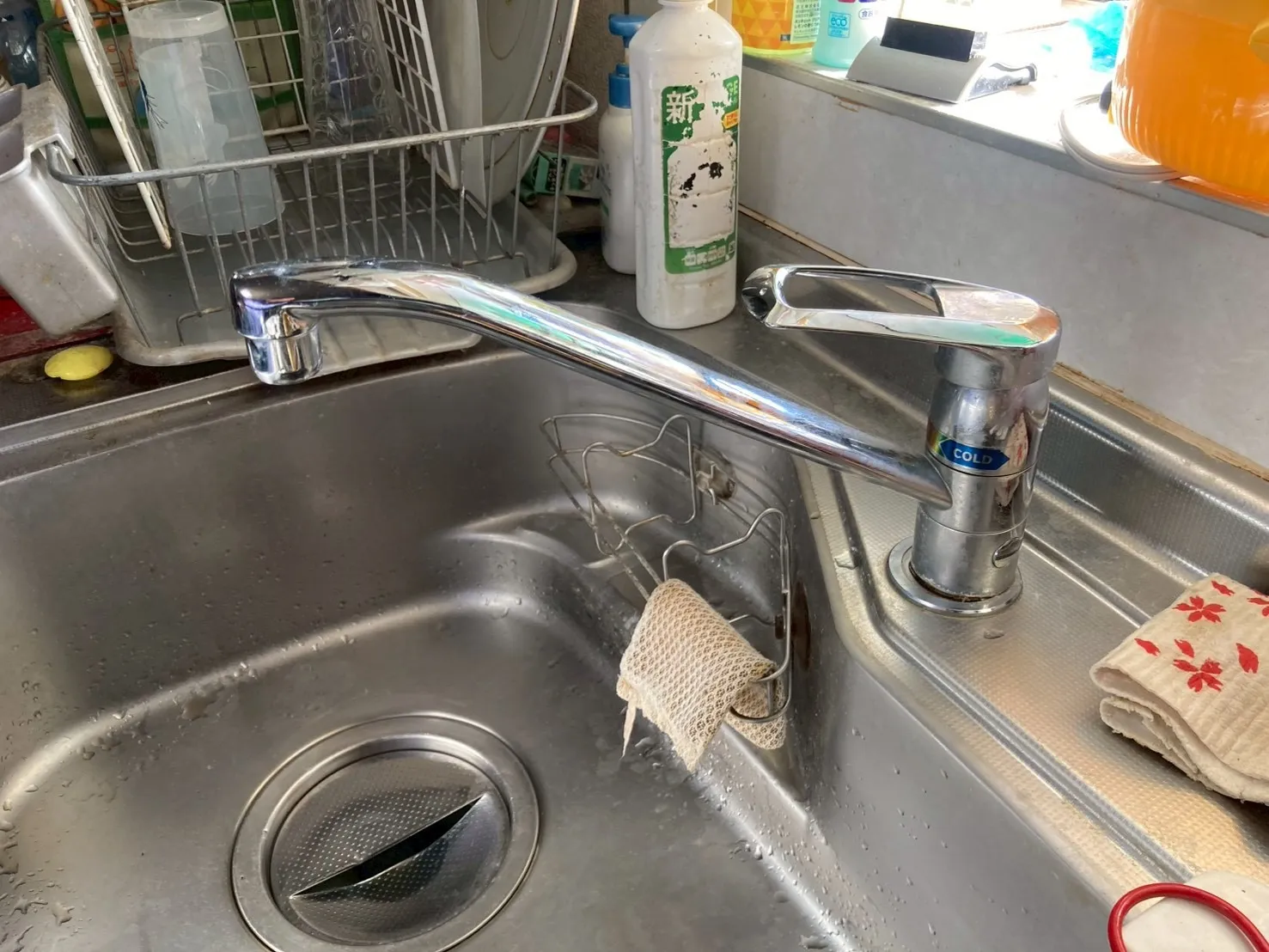 既存のキッチン用水栓は、メーカー型番不明、シングルレバー混合水栓です。