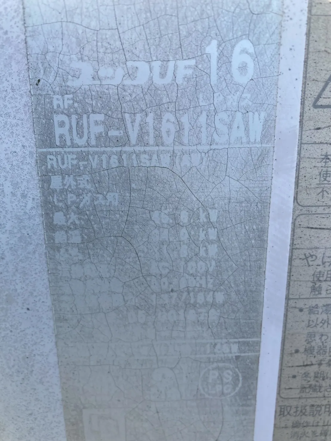 施工前→リンナイ、RUF-V1615SAW、16号、オート、屋外壁掛型、給湯器
