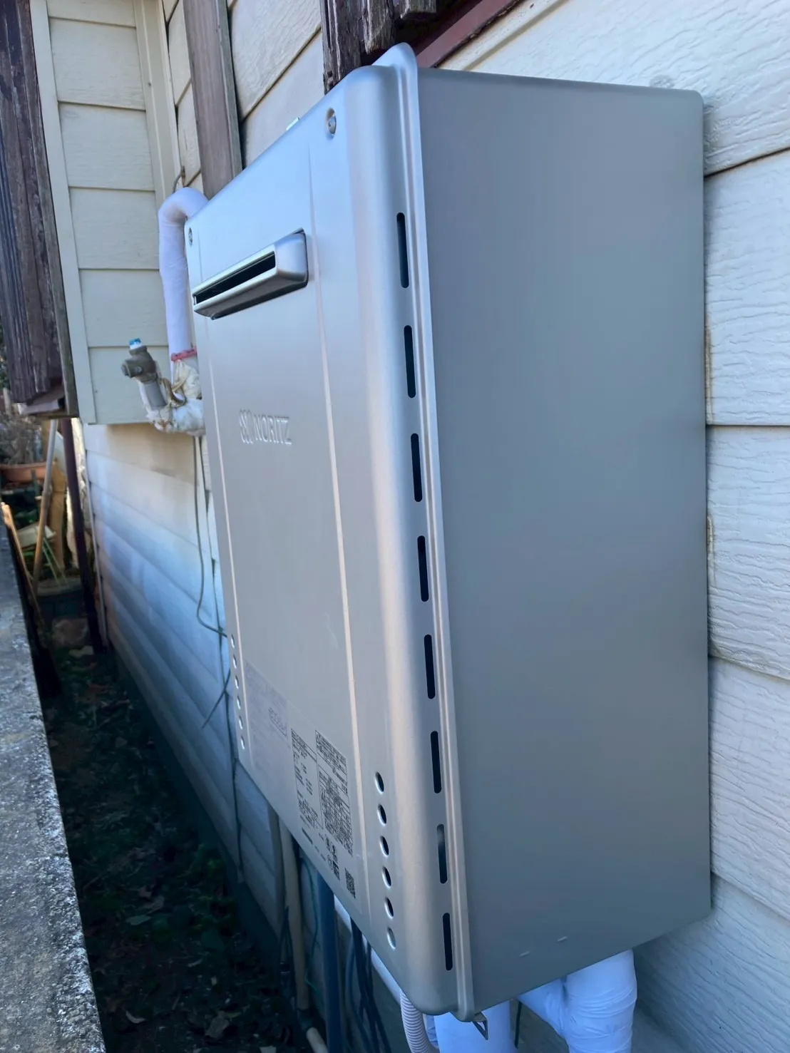 リンナイ、RUF-V1611SAW、RUX-V1610W-E→ノーリツ、GT-C2072SAW-1 BL、20号、エコジョーズ、オート、屋外壁掛型、給湯器交換工事ー埼玉県さいたま市見沼区蓮沼