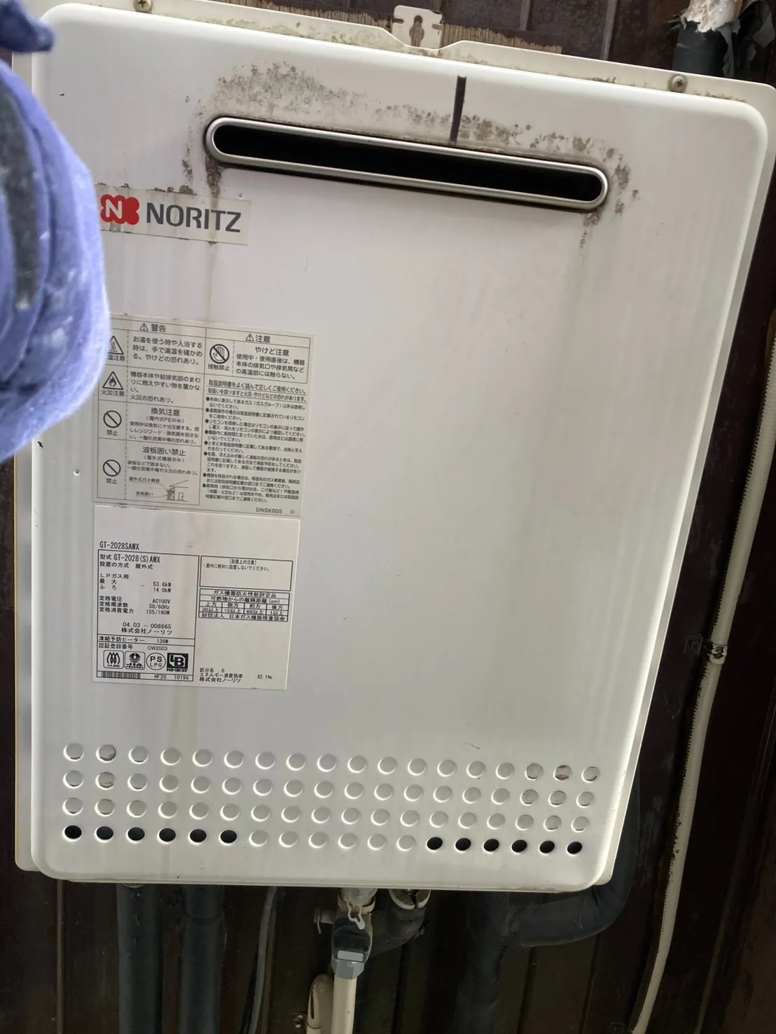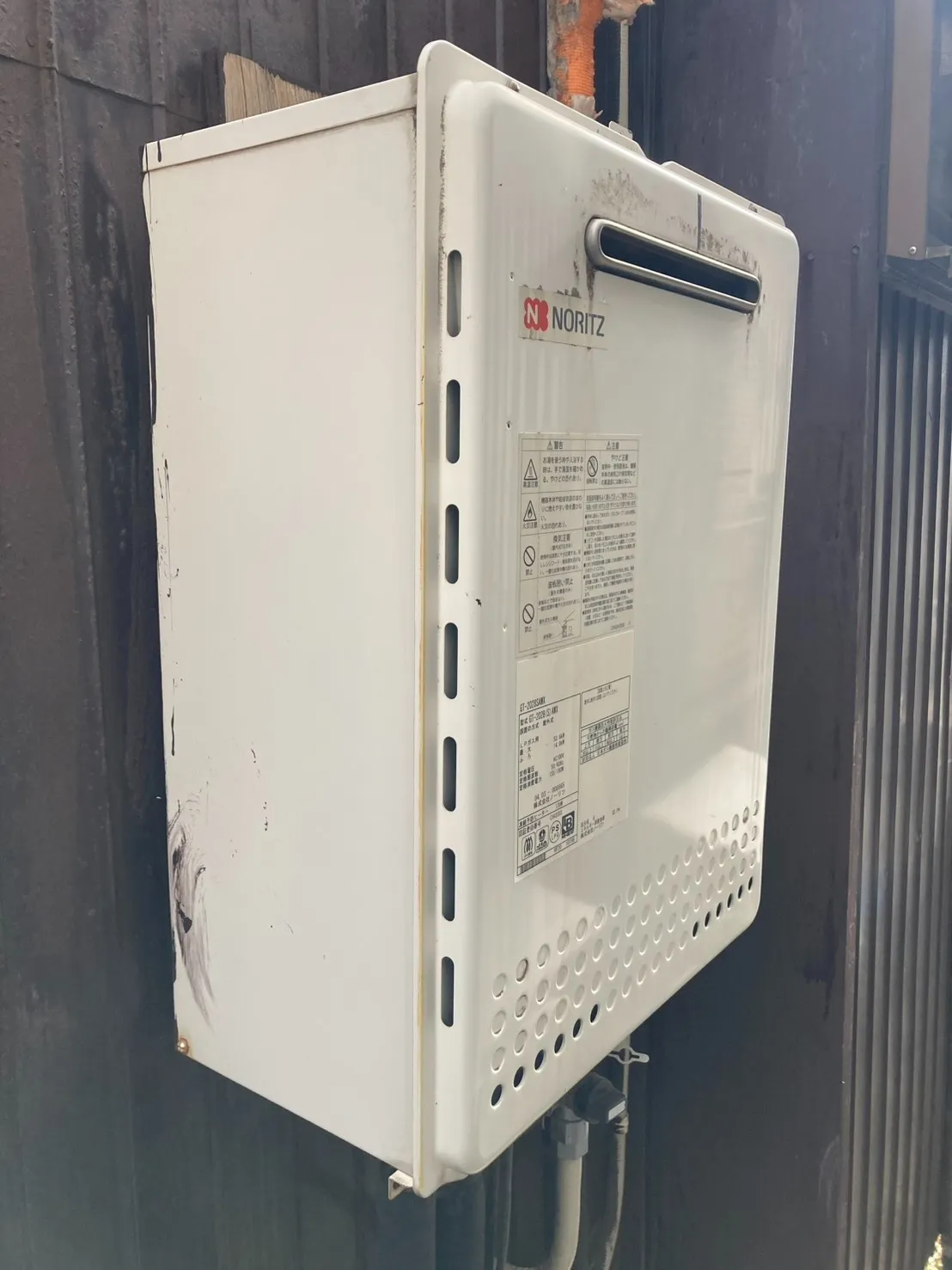施工前→ノーリツ、GT-2028SAWX、20号、オート、屋外壁掛型、ふろ給湯器