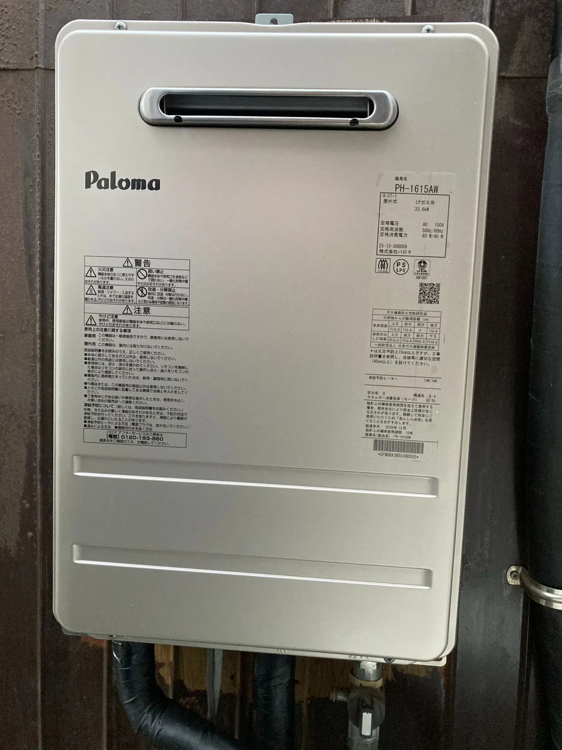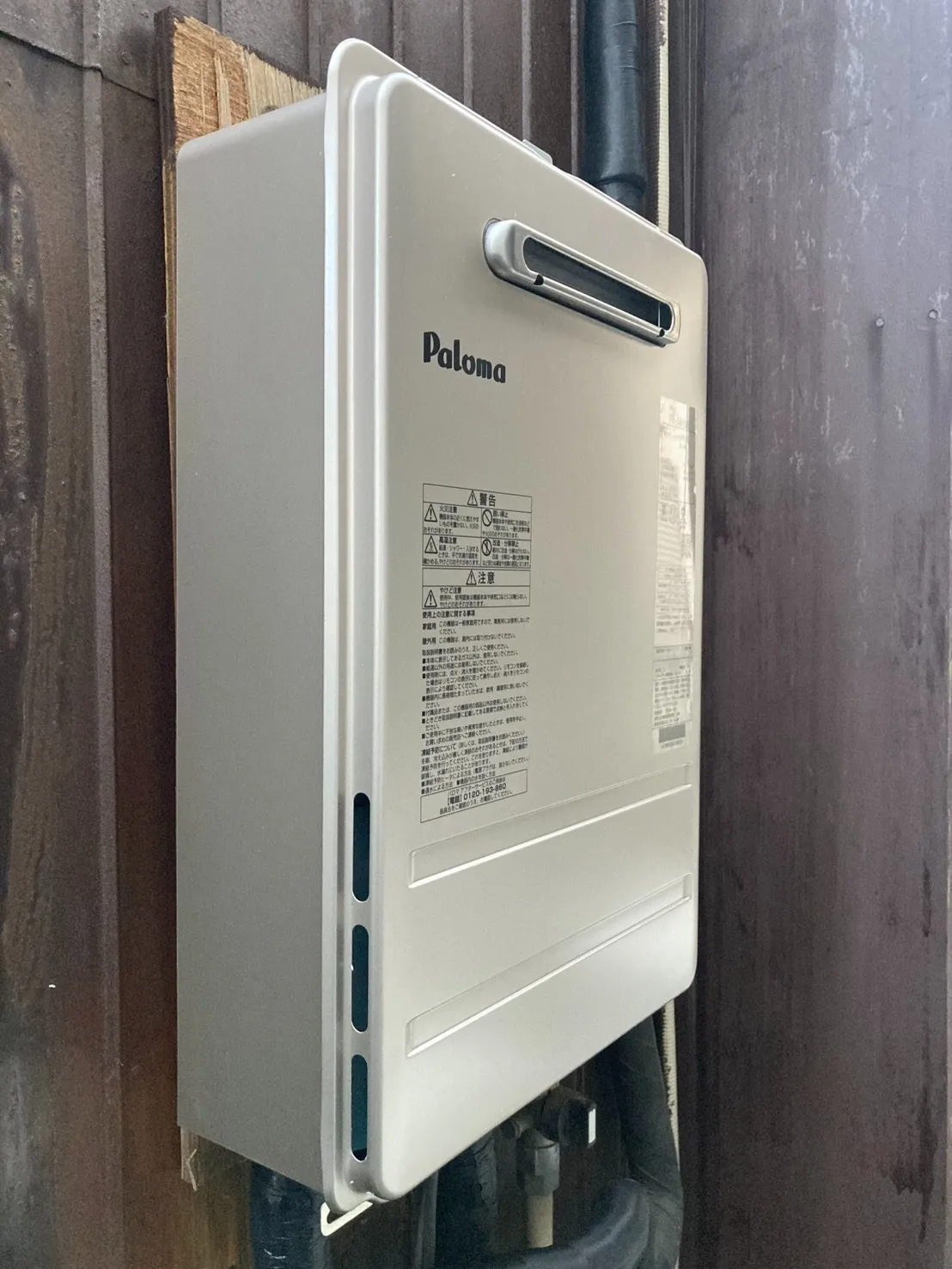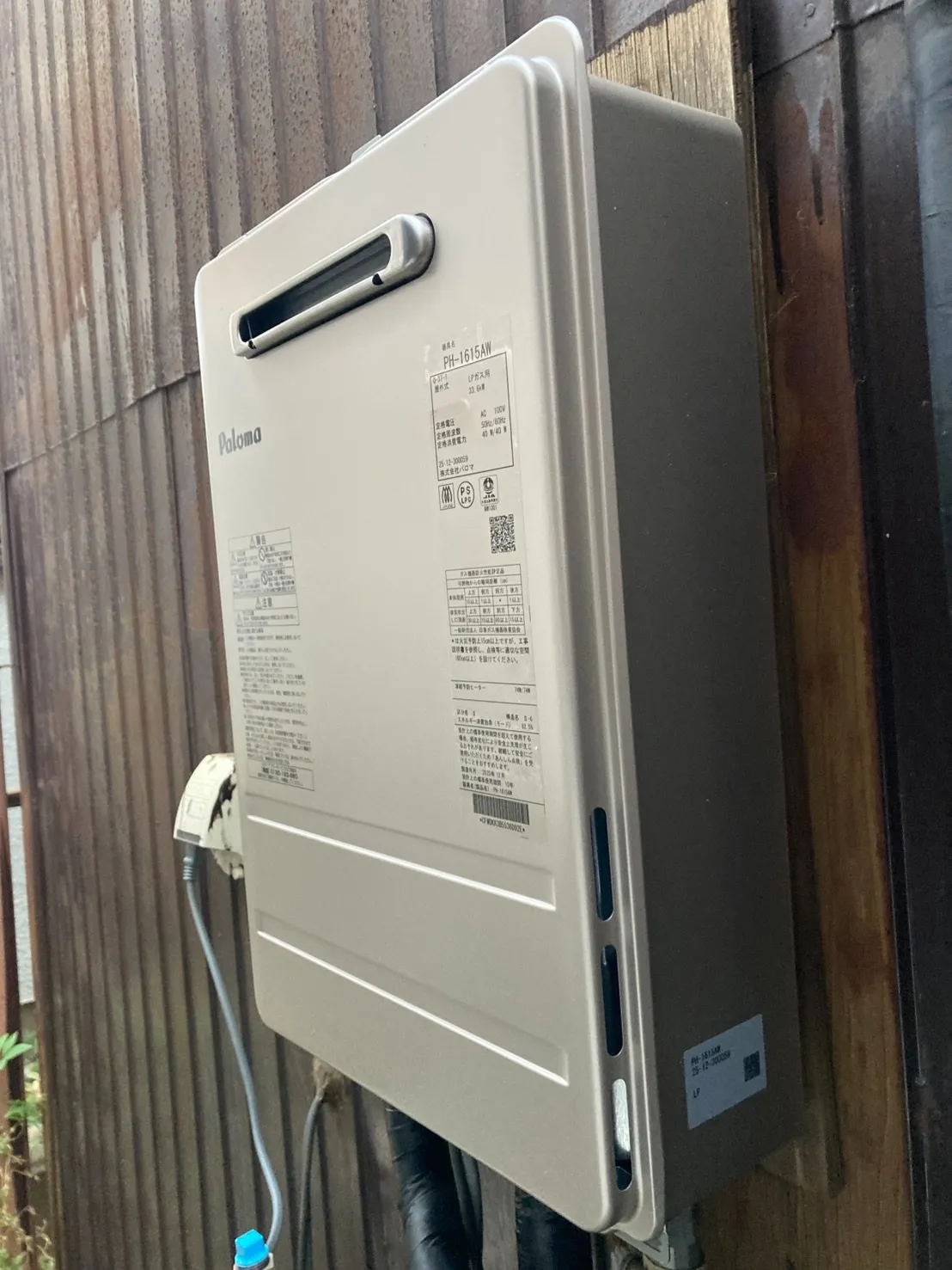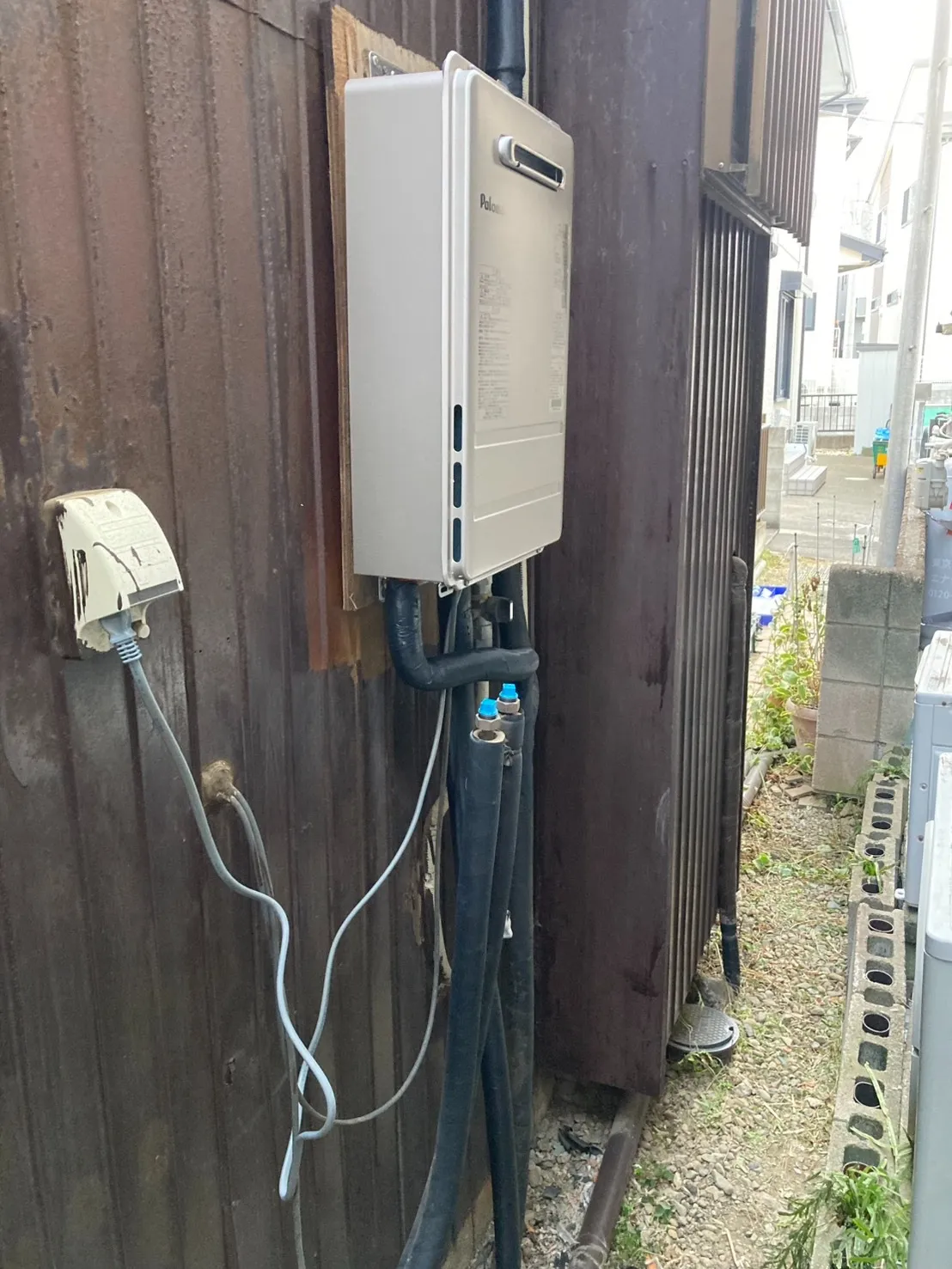 施工後→パロマ、PH-1615AW、16号、コンパクトオートストップタイプ、屋外壁掛型、給湯専用、給湯器