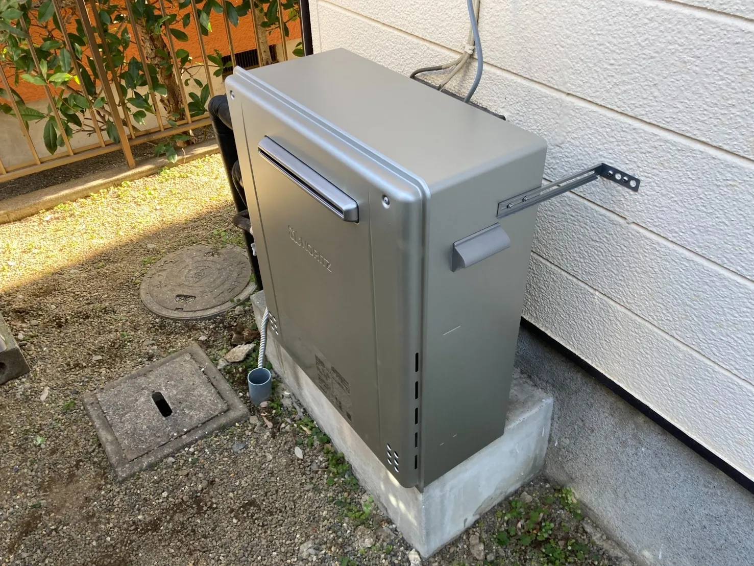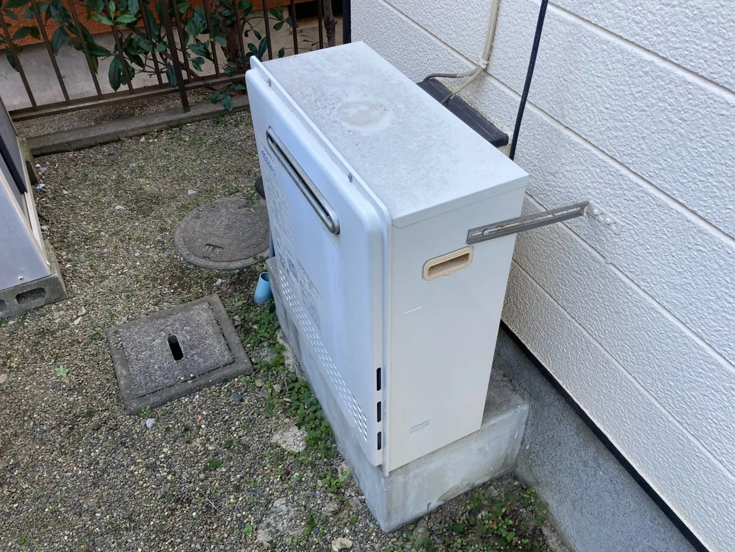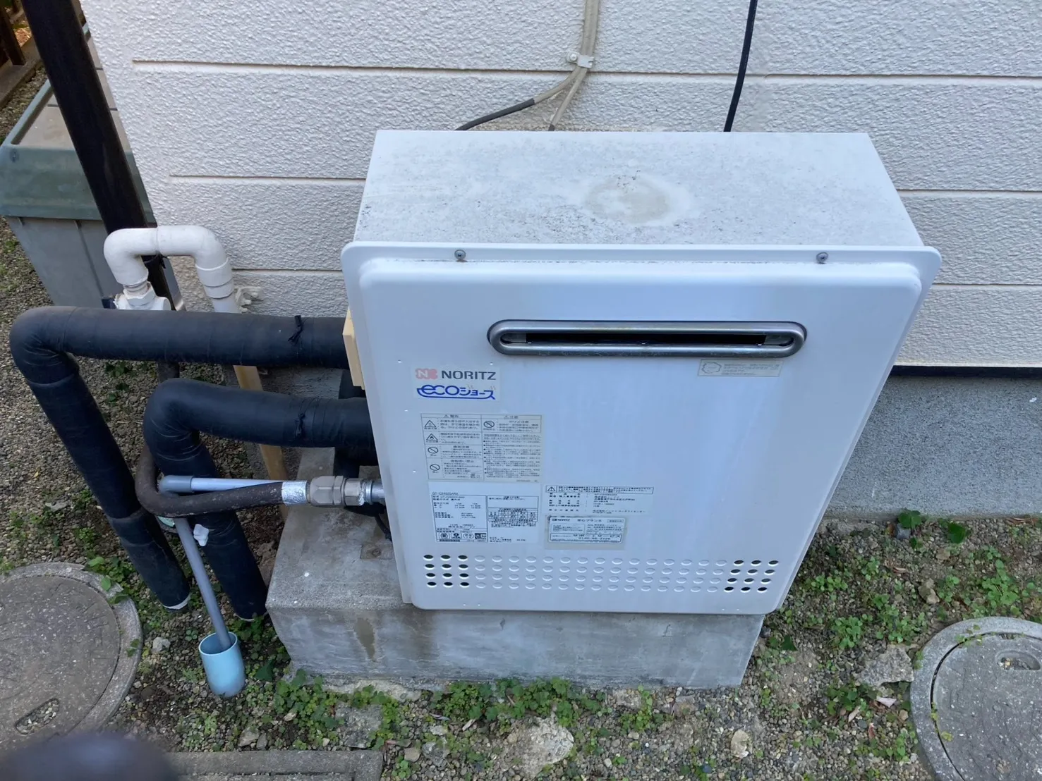 施工前→ノーリツ、GT-C2452SARX、24号、エコジョーズ、オート、屋外据置型、給湯器